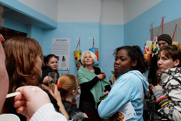 Local residents drinking sparkling wine and eating ice-cream sundaes at the Queenstreams Estate Art U Need launch party