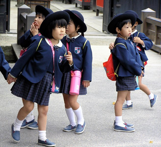 Young children visiting an Edo-style village, Toei Eigamura Film Park